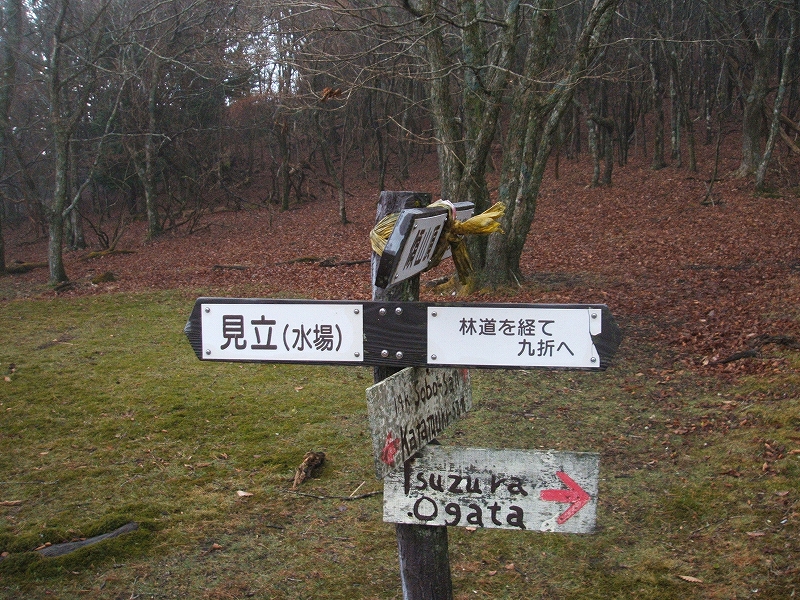 ④黒仁田登山口にてストレッチ ⑤道標 ⑥⑦九折越をめざします ⑧ガスの中の九折越