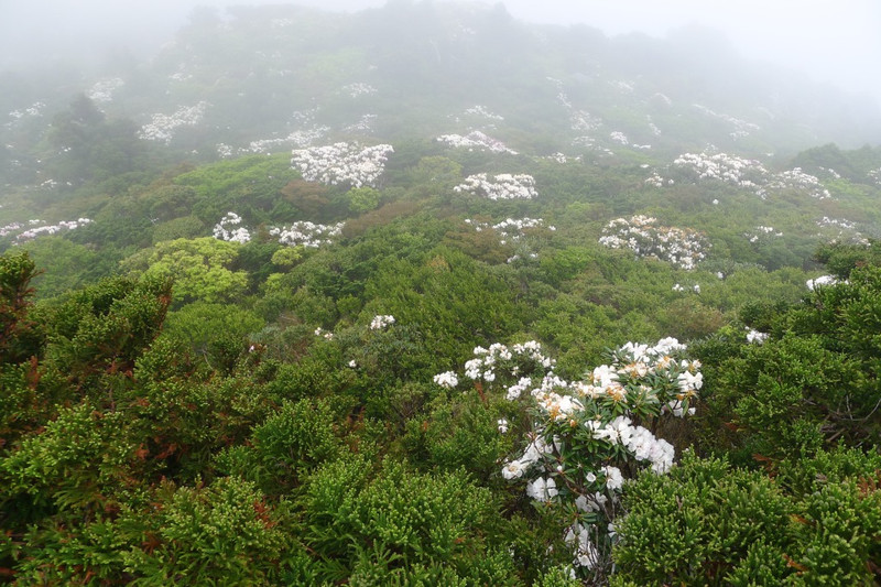 これ以外で 永田岳の山腹にもいっぱい咲いていましたが、ガスがかかり撮影できませんでした。 本当に、素晴らしい今年のヤクシマシャクナゲです。