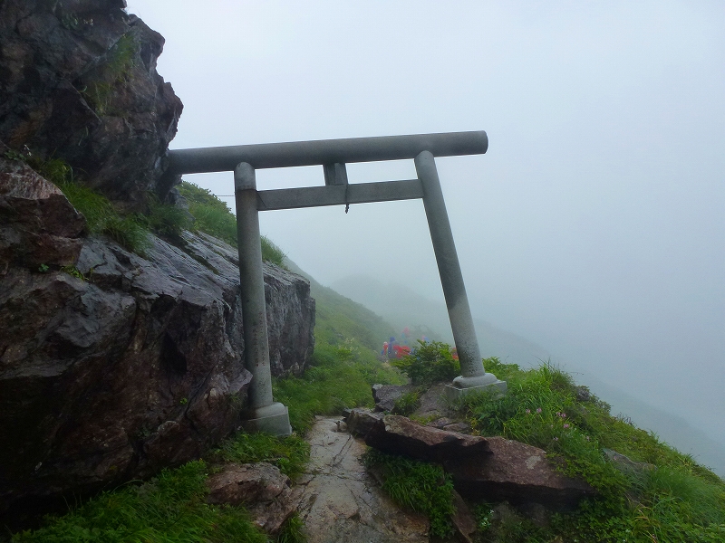 6)富士山を敬うことから浅間神社です 7)トマノ耳 8)西黒登山道分岐 9)谷川岳肩の小屋へ降りてきました。管理人の森下さん。お世話になりました。 10)下山です。小屋付近は立派な石積の登山道です