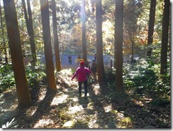 さらに急な登山道を下ります。ふれあい林道に下りてきました。 ![]()