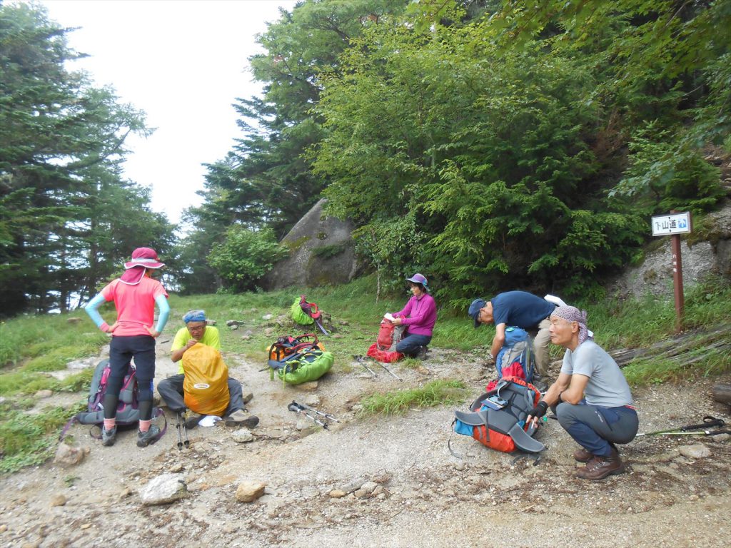 今回は時間に余裕がなかったので小仙丈岳経由の最短コースを往復。 朝食4時、食べて出発。 また、昼食も下山後小屋にてする。 小屋にて荷物預かりOKだったので参加者は不要な物を置いて登ることができた。