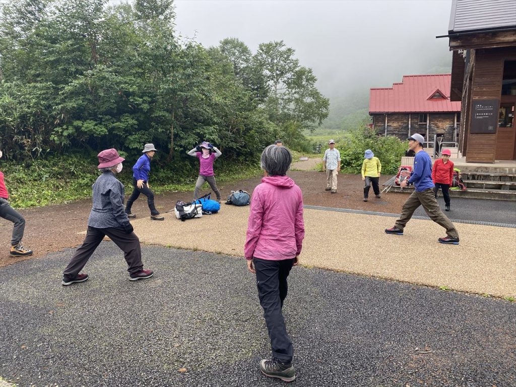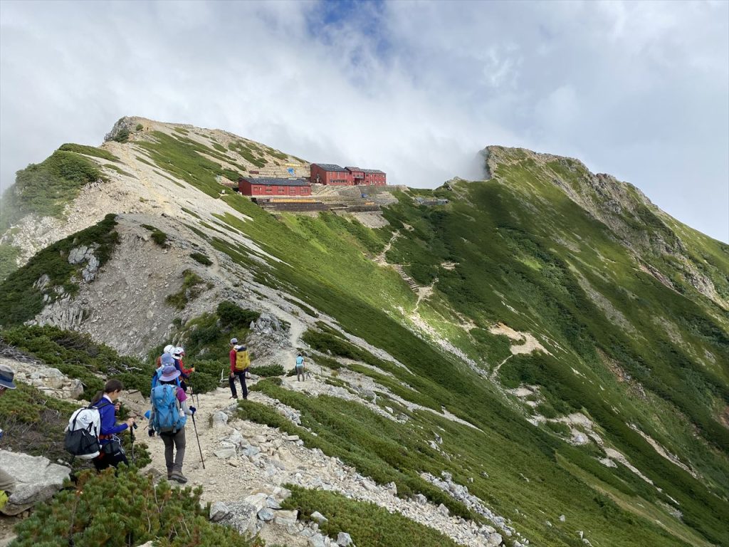時間より1時間半遅れの出発となった。歩き出してすぐに雨が振り始めレインでの行動となった。蒸す中標高を上げていきます。ガスがかかった天狗原・乗鞍岳を通過していくと突如ガスが取れ白馬大池と白馬大池山荘が見え疲れが吹き飛びます。夕食をゆっくり取り明日の長丁場に備えます。