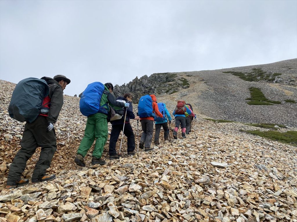 後ろを振返ると自分達が歩いてきた長いルートが確認できます。Ⅱ峰北に到着した時にはみんな笑顔で頑張りを