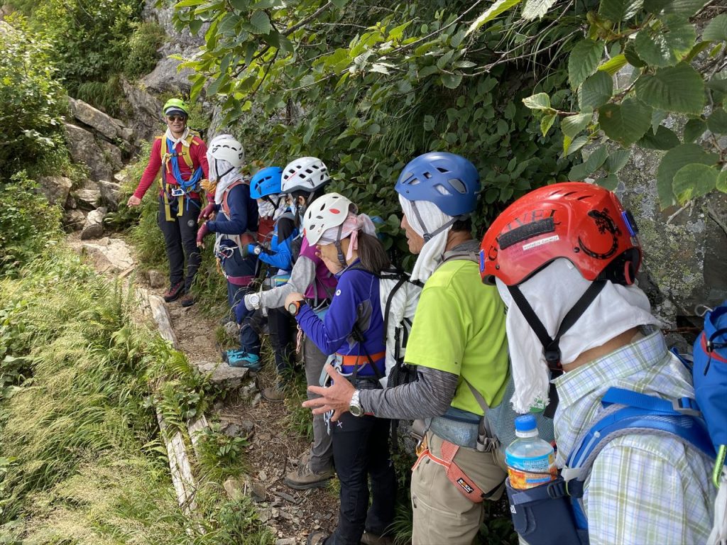 鎖にカラビナをかけながら安全第一で進んでいきます。岩の間に掛けられた鉄の橋にビクビクしながら進みます。