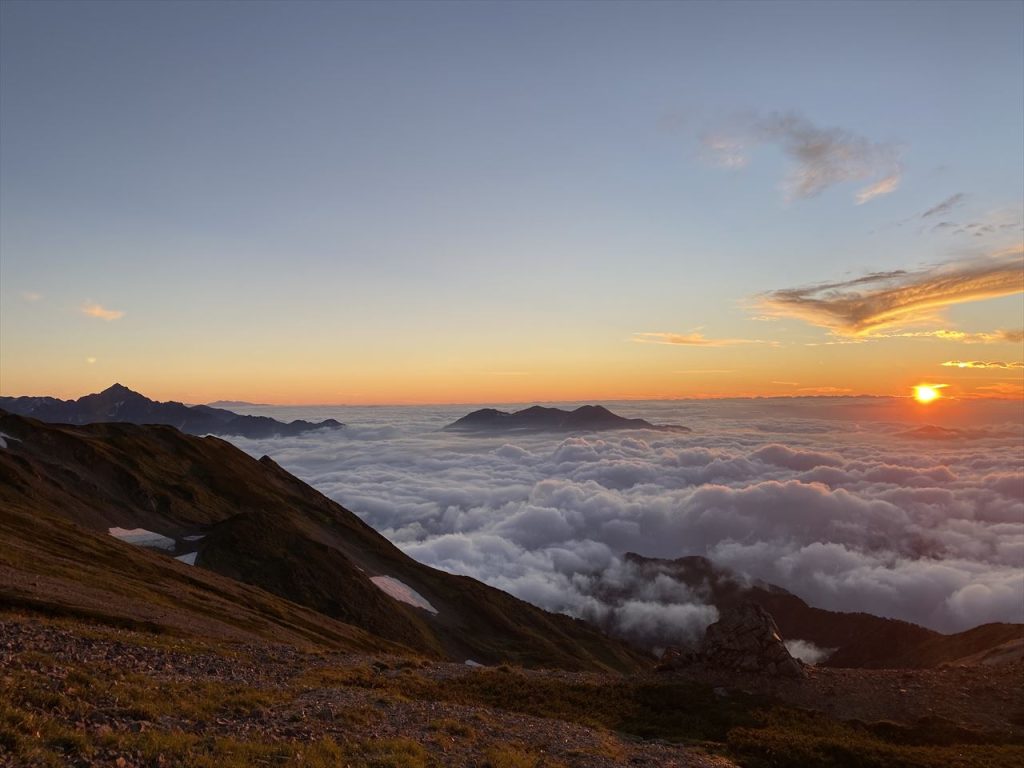 天狗山荘では綺麗な夕日、夜には満天の星空、明日の不帰ノキレットは楽しみ