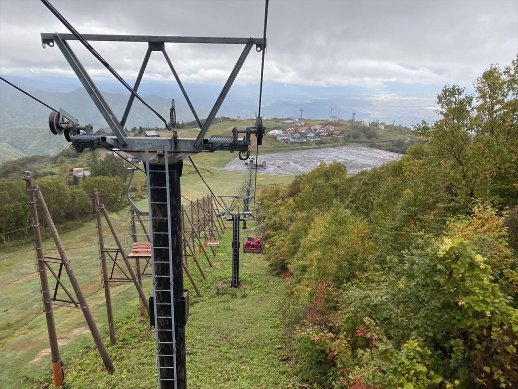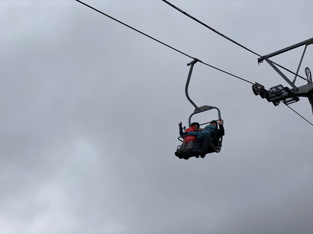 翌朝は山に厚い雲がかかっていましたが出発!標高920mからロープウェイ、リフトを乗り継ぎ1810mまで高度を稼ぎます。しかし、この日の気温は4℃リフト移動で体温を奪われてしまいます。
