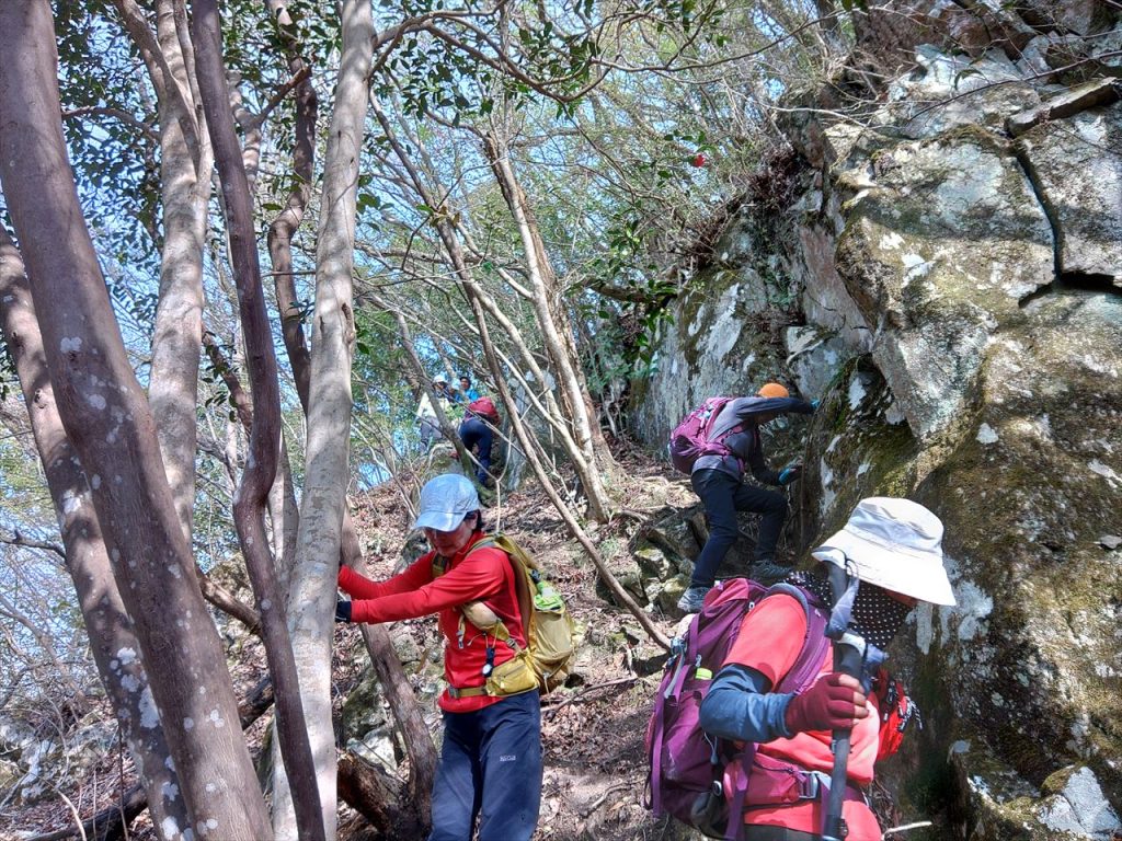 石山~鬼落山、石山からの急坂下りロープあり 急登の登り、ロープ設置