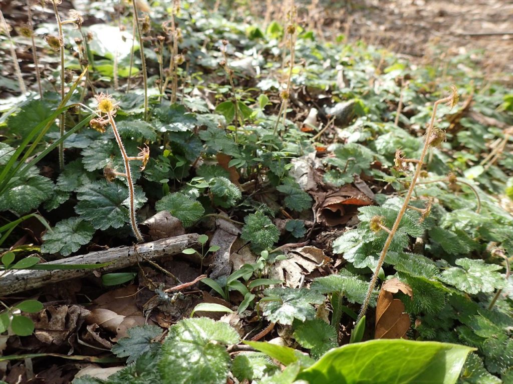 標識が1000m辺りになると立派なブナの木がたくさん。足元にはカタクリの花たちが増えてきます
