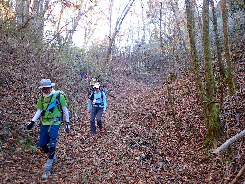 所どころに道標があります、踏跡もしっかりしています。尾根道への上り。![]()