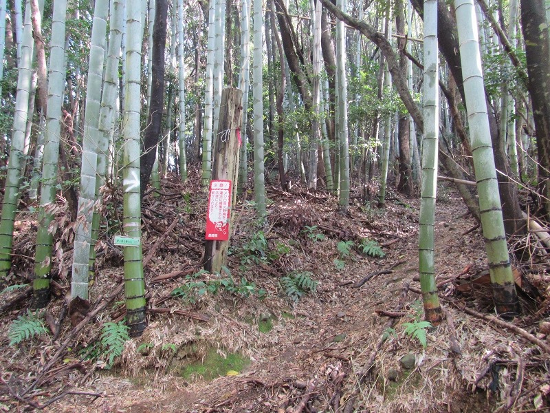 高岳を下りて仰烏帽子山へ向かいます。従来の仰烏帽子山入口道標。 ![]()